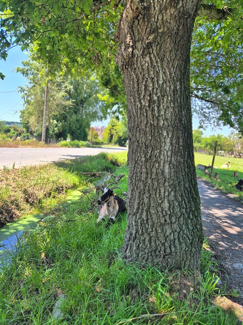 The Camino is a long place. It’s windy (and windy). It meanders through villages, forests, along highways, passes grazing cows, escaped goats, magnificent lone horses and dusty chickens.