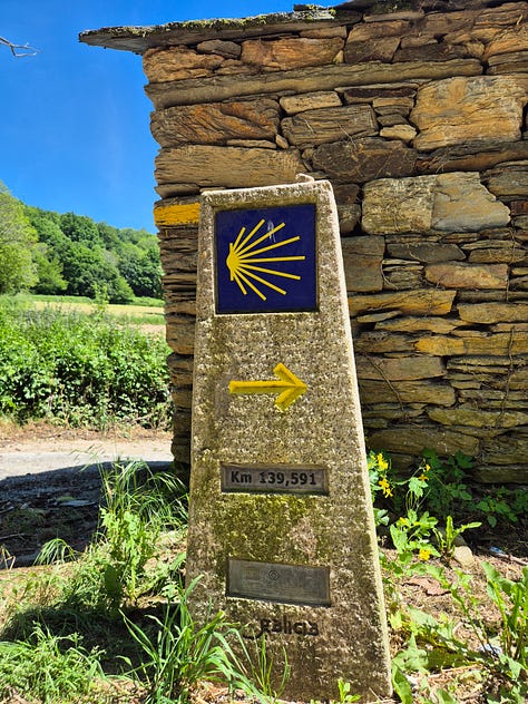 It is customary to greet fellow pilgrims with “buen camino” as you pass each other, and you hear versions of the greeting accented by flavours from all over the world on the way. I collected an assortment of responses to my greetings - “bo camiño” in Galicia, “igualmente” from folks who probably choose to give thoughtful responses to “how are you” instead of parroting it back, but the best one I was given was “ánimo”.